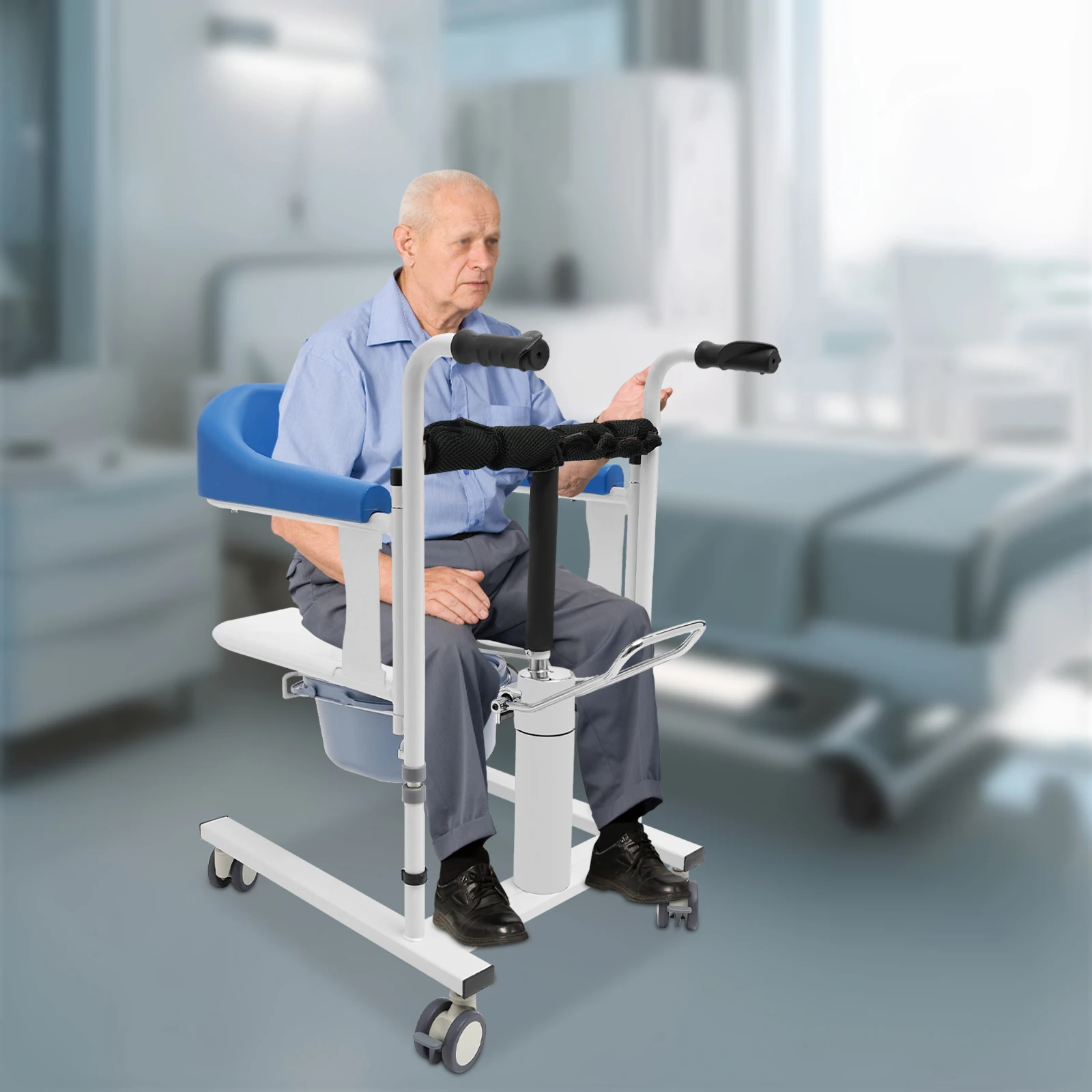 Hydraulic Patient Lift Nursing Chair 4 in 1 Shower Chair Transport Wheelchair Adjustable Lifting Height Transfer Aid