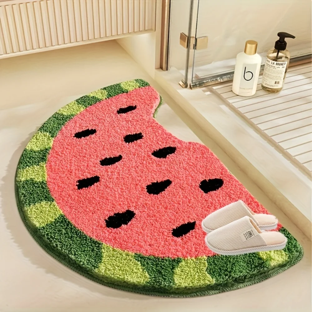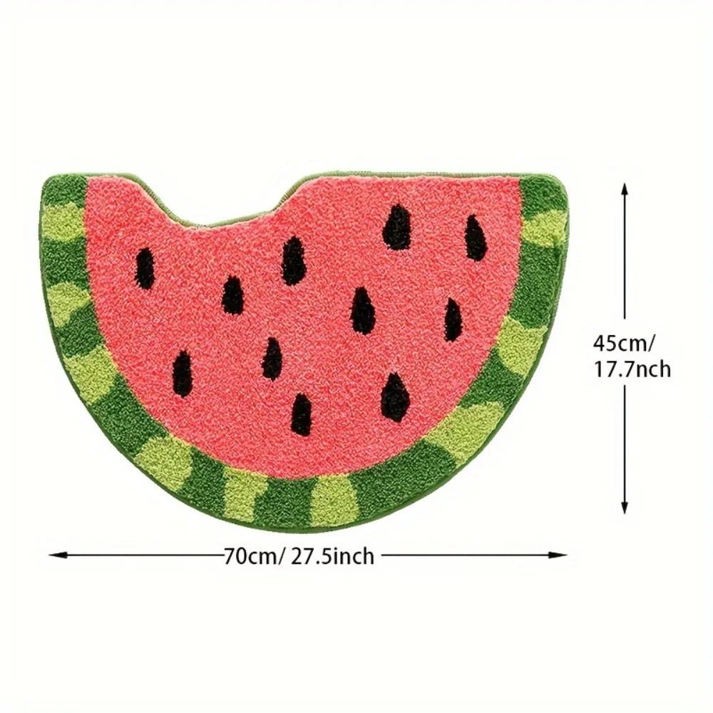 2. Bring a touch of summer to your bathroom with this watermelon design bathroom mat. The semicircular shape and medium pile height make it a comfortable choice for your bathroom, bedroom, kitchen, or living room. Machine washable for easy care, this mat is the perfect essential accessory for your home.