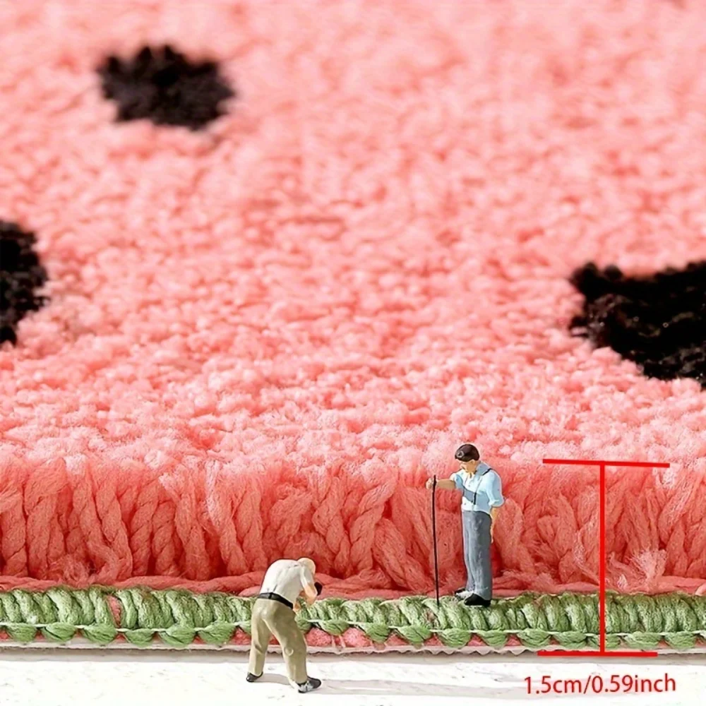 5. Elevate your bathroom decor with this watermelon-themed bath rug, featuring a unique and eye-catching design. The 1.5cm thickness adds comfort underfoot, while the 1800gsm square gram weight provides a plush and luxurious feel. Machine made for precision and durability, this mat is the perfect addition to any home.