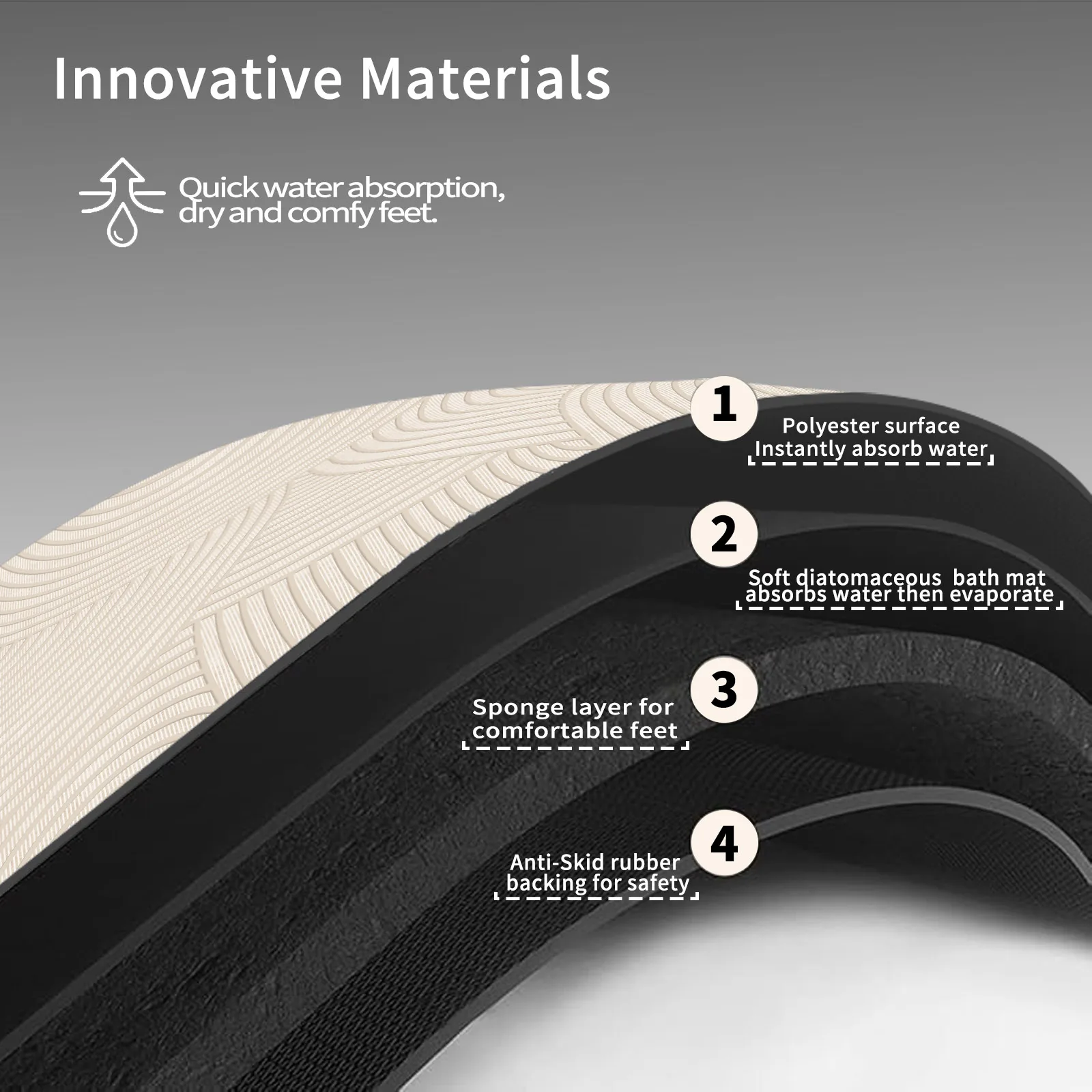 2.Diatom mud fabric surface can absorb moisture quickly; Foam absorbent layer can absorb water instantly and evaporate quickly.