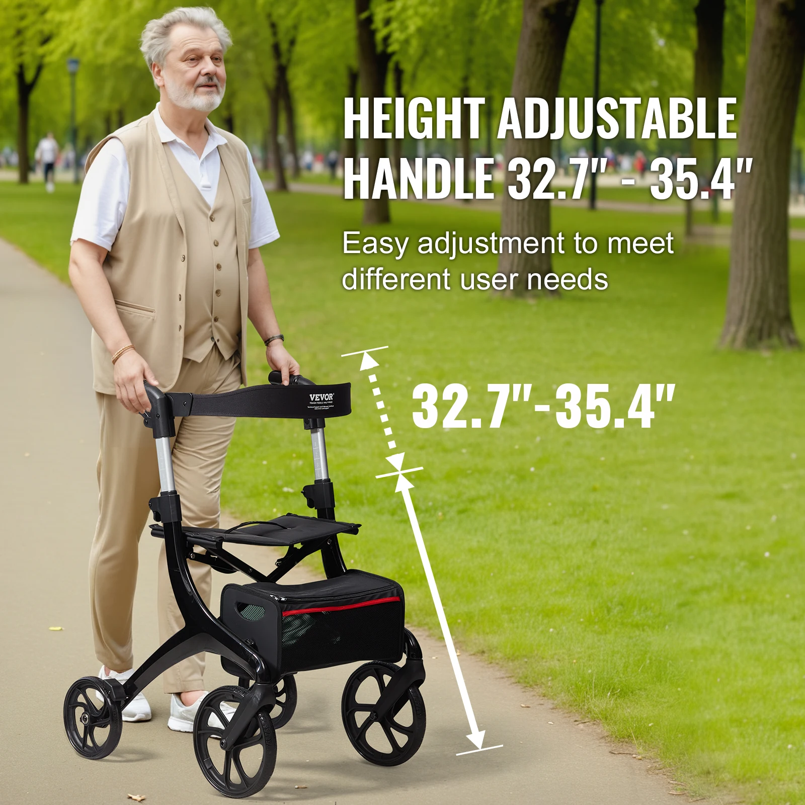 Experience the ultimate in mobility and comfort with VEVOR integrated die-casting aluminum rollator walker. With high-quality aluminum frame, 300lbs weight capacity, adjustable handle, foldable design, and anti-slip wheels, it’s your perfect companion for outdoor adventures and active lifestyle.